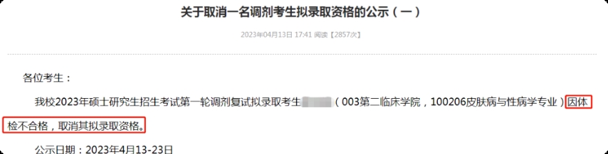 体检不合格