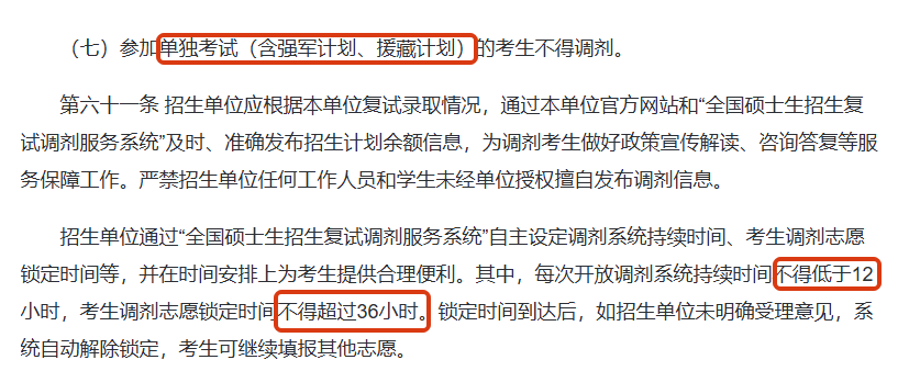 已转移成功的调剂志愿与直接在调剂服务系统填报的调剂志愿一样,在招生单位设置的锁定时间内不可取消或更改(锁定时间由各招生单位自主设定,最长不超过36小时);未转移成功的调剂意向在调剂服务系统中无效。