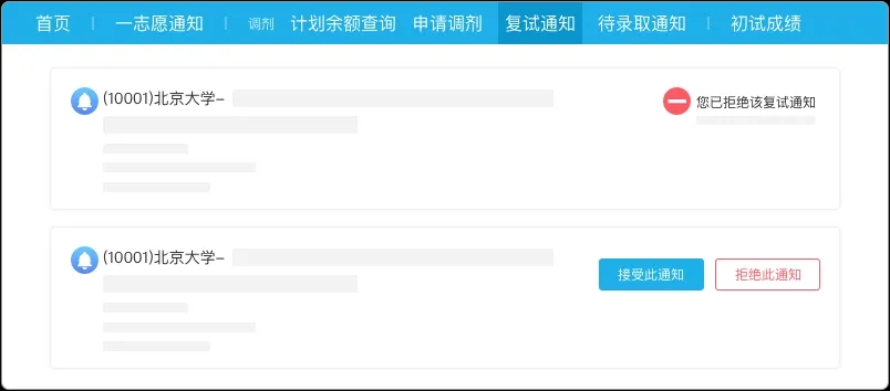🔹接受了一个志愿的“调剂复试通知”,不会影响其他调剂志愿。